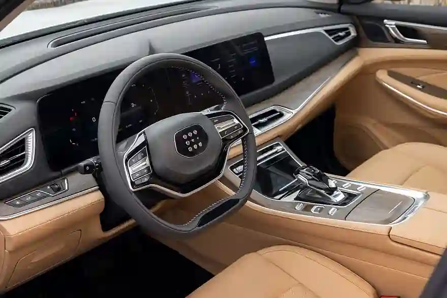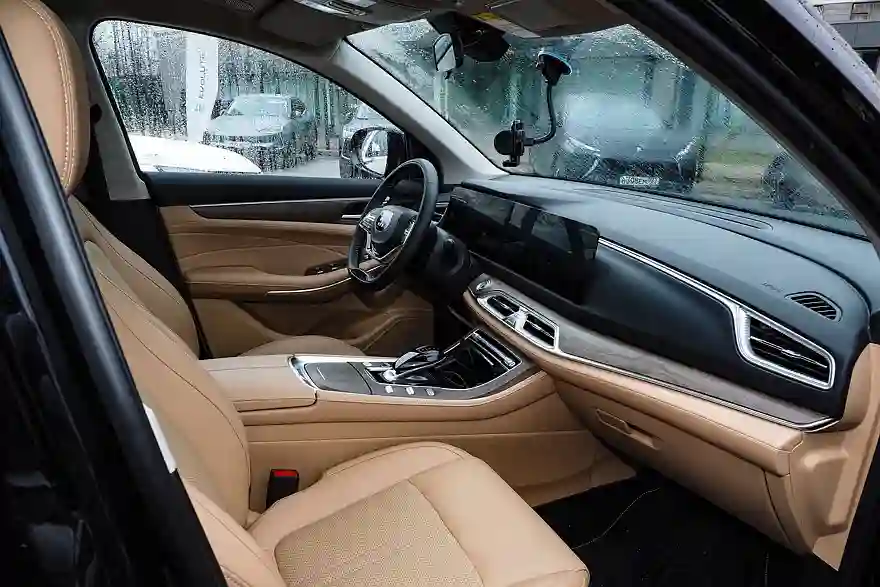 К рабочему месту водителя у меня возникла только одна претензия: нет регулировки поясничного подпора, ну и кресло мне пришлось сдвинуть назад до упора. Вот честно, не понимаю, почему конструкторы очень многих китайских марок экономят на диапазоне перемещения передних кресел, и тем более непонятно, зачем это было делать в случае автомобиля с солидной колесной базой в 2785 мм – это больше, чем у некоторых других семиместных кроссоверов. В остальном, учитывая регулировку рулевой колонки по наклону и вылету, диапазон регулировок вполне достаточный.