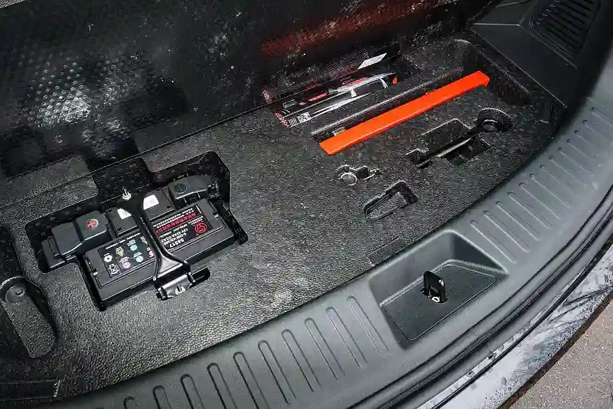 Но есть и момент, который вызывает беспокойство. Если поднять коврик, закрывающий заднюю часть пола в багажном отсеке, то под ним обнаруживается стартовый 12-вольтовый аккумулятор емкостью 43 Ач, вкручивающаяся буксирная проушина… и полное отсутствие запасного колеса, даже в виде «докатки». Вместо этого там есть баллон со специальным аэрозольным герметиком, который заполняет колесо, распределяется по его внутренней поверхности и заклеивает прокол. Охотно верю, что если вы поймаете гвоздь, то такая система с этой проблемой справится и вы успешно доберетесь до шиномонтажа, где шину отремонтируют капитально и профессионально.  А если боковой порез? С ним герметик вряд ли справится, а ведь на наших дорогах нередко встречаются выбоины с острыми краями, особенно по весне, когда «асфальт начинает сходить вместе со снегом».