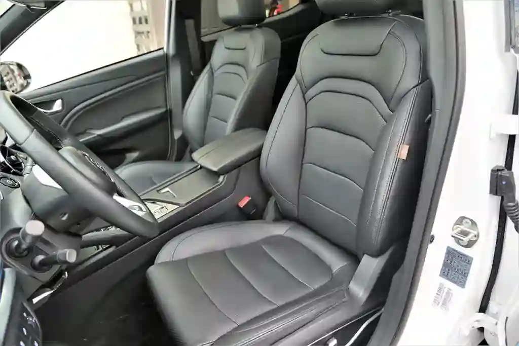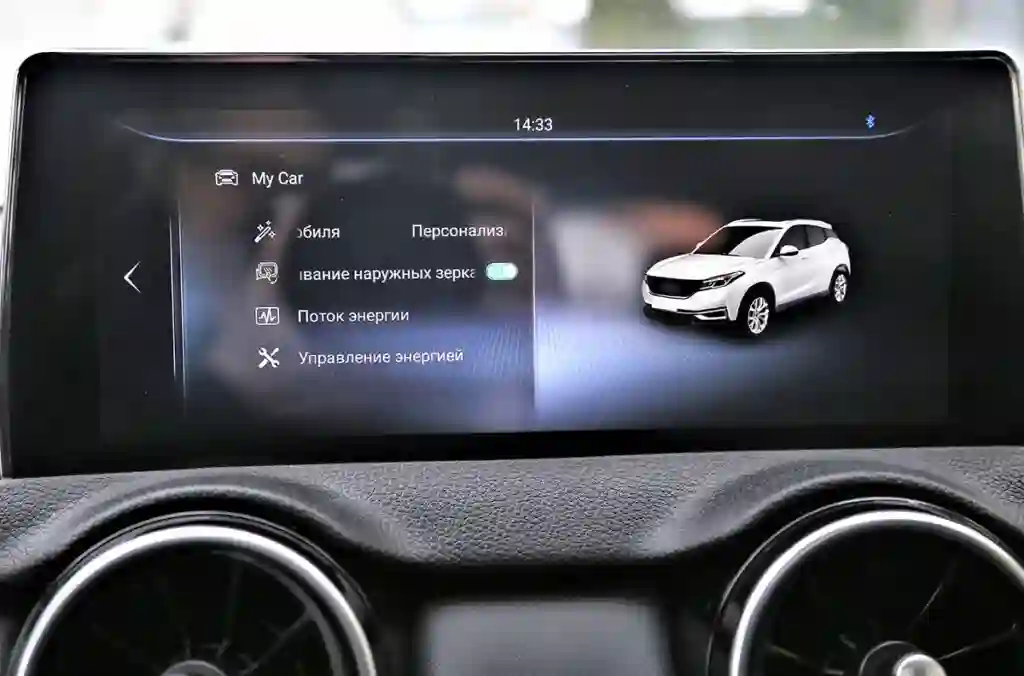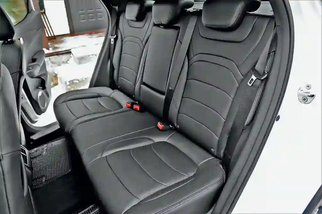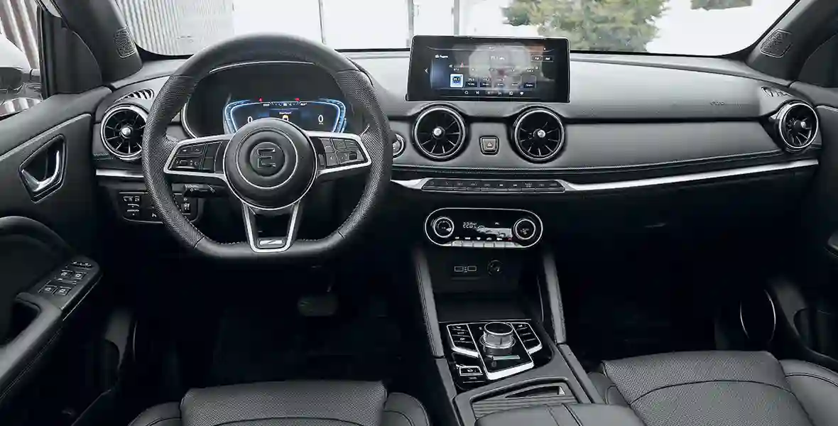 Интерьер салона кому-то может показаться аскетичным, но мы определили его как «сдержанный» и вполне современный. В отделке использованы экокожа и мягкий пластик. Если не придираться, то салон выполнен на неплохом уровне. Цифровая приборная панель имеет три варианта настроек конфигурации приборов, мультимедийная система снабжена 10,3‑дюймовым экраном. И очень много всякого рода настроек, как функционала автомобиля, так и многочисленных систем помощи водителю. Имеется даже встроенный видеорегистратор, причем с очень хорошим разрешением. При этом есть ряд претензий к эргономике. Передние сиденья, и водительское, и пассажирское, снабжены электрическими регулировками и подогревом, но регулируются только движение назад — вперед и наклон спинки. Боковая поддержка слабенькая, поясничный подпор отсутствует… Если учесть, что рулевая колонка регулируется лишь по углу, то не исключено, что удобно устроиться за рулем получится не у всех. Правда, у нас проблем с посадкой не возникло. Для двух человек вполне достаточно места на сиденьях заднего ряда, но удобство путешествия для пассажира слева во многом зависит от того, как «угнездится» водитель.
