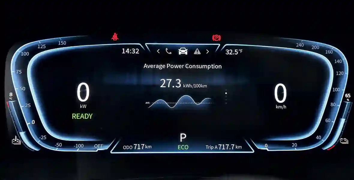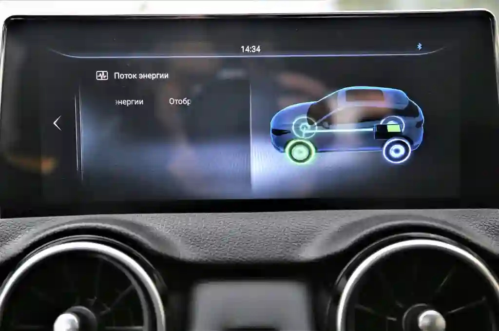 EVOLUTE i‑JOY снабжен 176‑сильным электродвигателем с максимальным крутящим моментом 225 Нм, который обеспечивает очень неплохую динамику (разгон до 100 км/ч происходит менее чем за 9 секунд). Ощущения от такого ускорения, которое не сопровождается рваным ритмом с «подхватами», а происходит равномерно, приятные. После «сотни» ускорение не столь интенсивное, да и расход заряда батареи сразу увеличивается. Кстати, о заряде. На тесте мы не пользовались автономным обогревателем, поэтому все тепло в салон получали за счет энергии основной аккумуляторной батареи. Да и вообще, электричество старались не экономить. Соответственно и получили: при «паспортном» пробеге с полностью заряженной батареей в 405 км мы, проехав 100 км, истратили 65 % ее заряда. Большая часть нашего маршрута проходила по автомагистрали, когда режим рекуперации энергии (а здесь есть три режима) практически не был задействован, поэтому «энергия извне» в батарею почти не поступала.