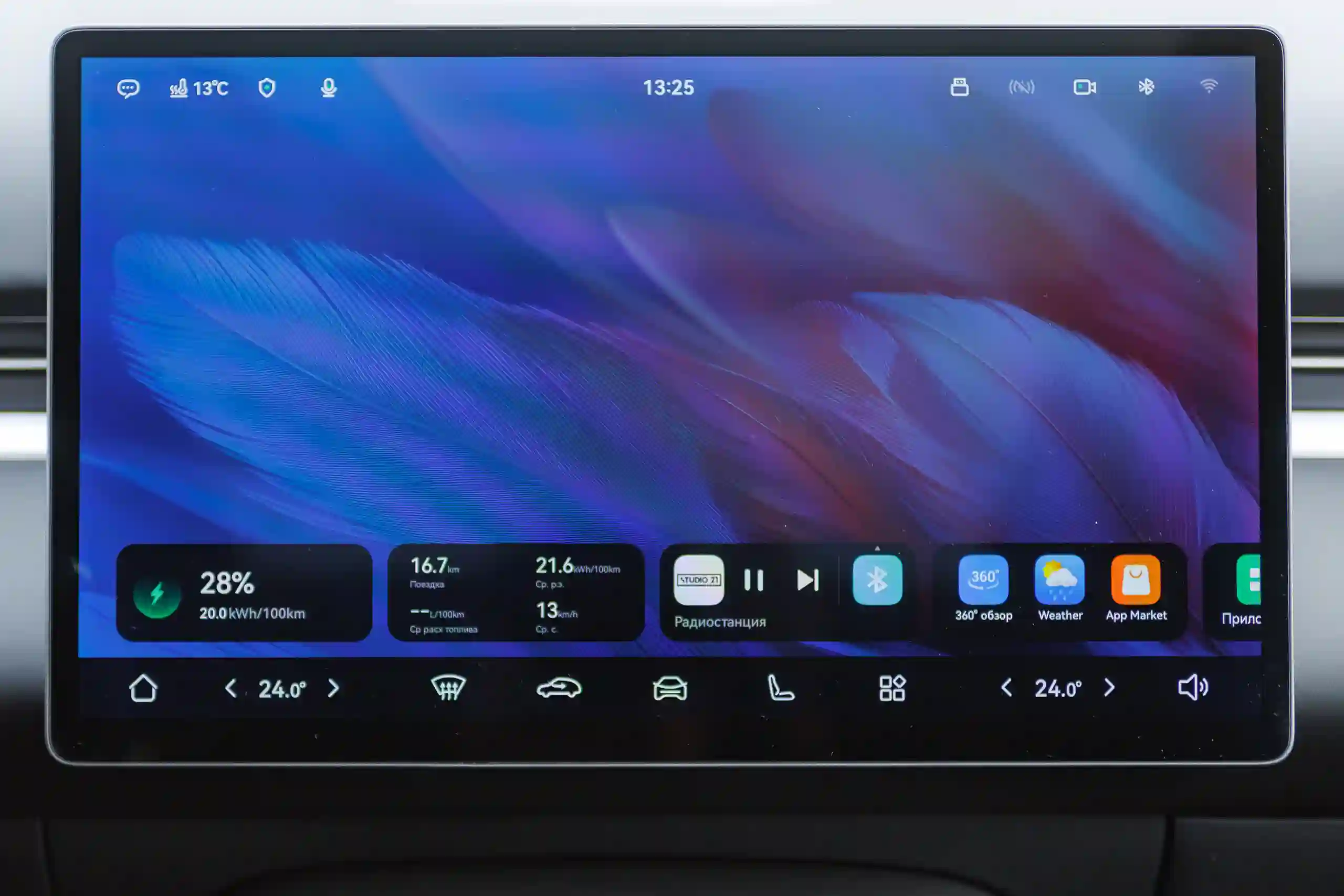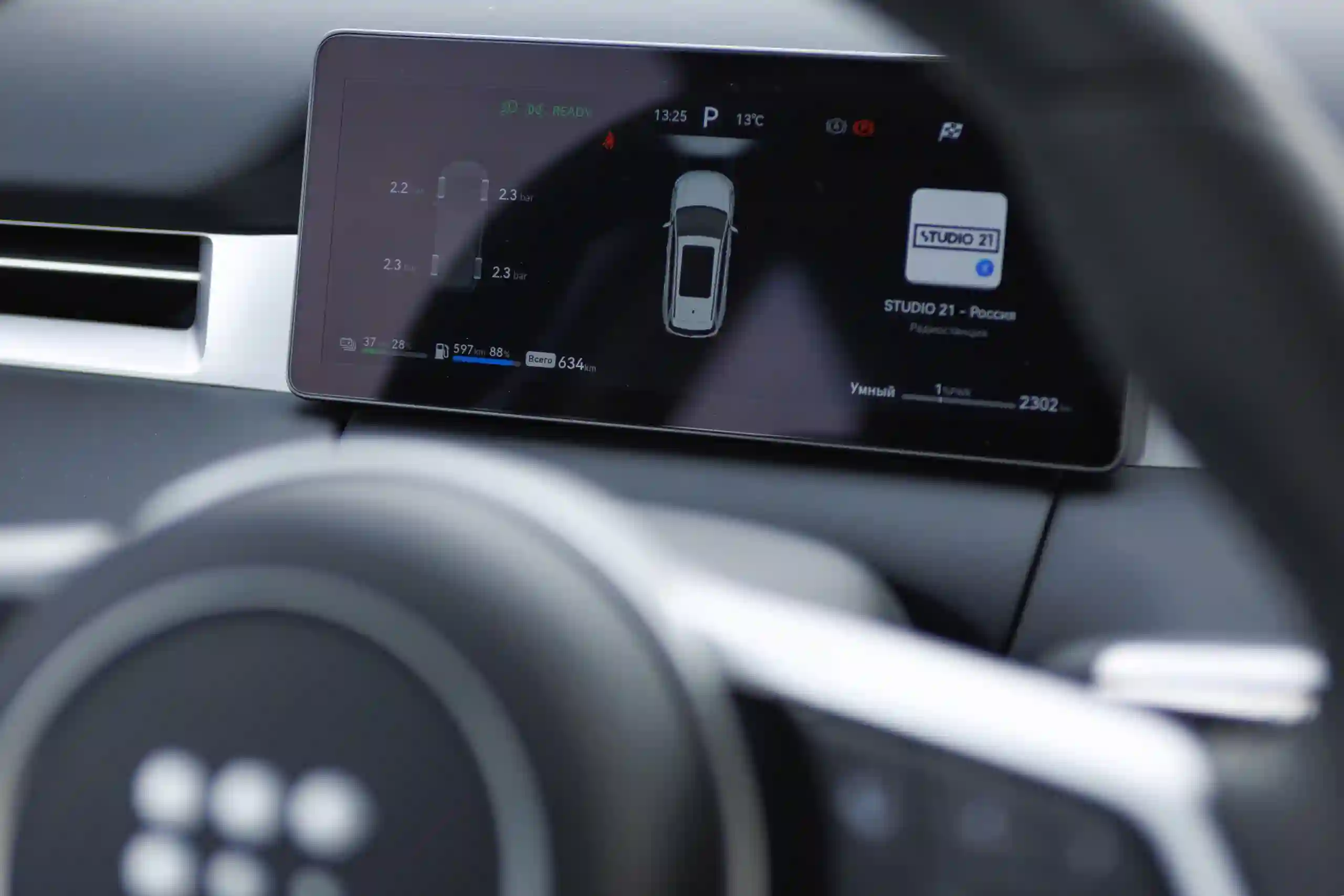 Длина окружности МКАДа — 109 км. Такой же запас хода на электротяге после полной зарядки батареи отображал и EVOLUTE i‑SPACE прошлого модельного года, хотя его практический максимум был 75-80 км. Чтобы проехать столько в чистом режиме, требовалось вести машину очень плавно и бережно. Но при снижении уровня заряда до 25% автомобиль всё равно сам выходил из режима EV и подключал генерацию.