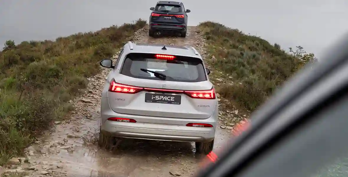 Несмотря на исключительно переднеприводную конфигурацию, не беспомощен i‑SPACE и на бездорожье. Благодаря дорожному просвету в 180 мм и электронной имитации блокировки переднего дифференциала мы достаточно уверенно забирались по кочкам на крутые горки.
