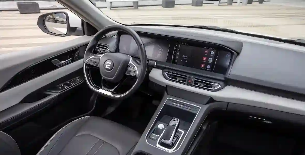 Электрический седан EVOLUTE i‑PRO максимально соответствует запросам и потребностям водителя и пассажиров. У него просторный салон, отделка которого выполнена из практичной экокожи, и большой вместительный багажный отсек с полезным объемом в 502 литра, а также отсеки для хранения в передних и задних дверях. Сиденья второго ряда оборудованы механизмом ISO FIX для безопасного крепления детского кресла, задние двери снабжены «детскими» замками. В электромобиле установлен цифровой информационный экран водителя диагональю 7”, на который выводятся данные как о скорости движения, так и о режимах работы климатической установки. Мультимедийный сенсорный центр диагональю 8” на базе Android предоставляет возможность подключения внешних устройств, а также установку сервисов: навигации и приложений, делающих поездки удобными.