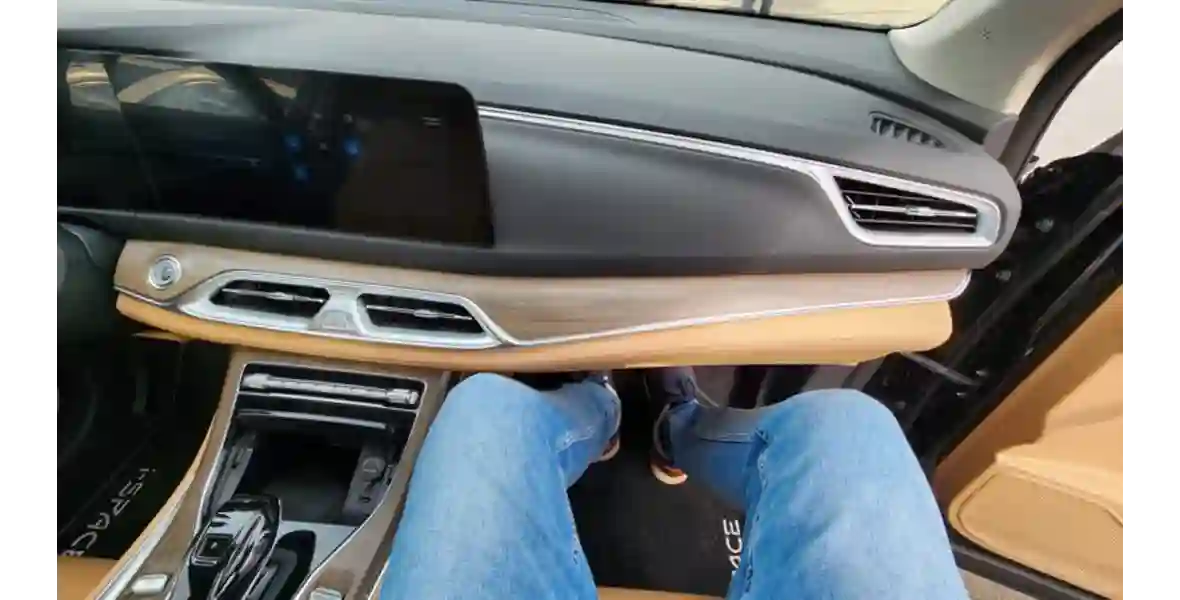 Но, как это часто бывает, при ближайшем рассмотрении вылезают различные особенности и нюансы. Возьмем, к примеру, посадку. На презентации нам рассказывали, что третий ряд i‑SPACE является едва ли не рекордным по простору в своем классе. Над головой действительно остается небольшой запас, и в отличие от более крупных DFSK ix7 и Aito M7, тут даже реально достать до подголовника. Но места для ног просто не остается, либо нужно прилично теснить пассажиров второго ряда.