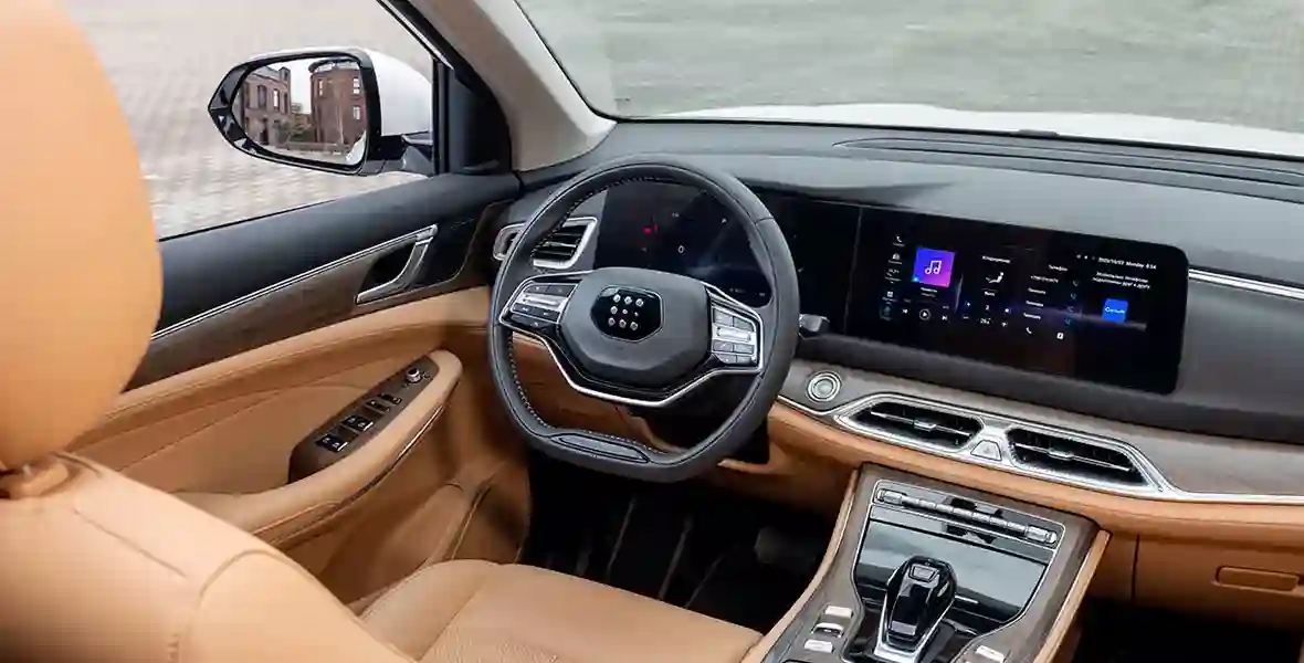 Рулевое управление – предсказуемое, что хорошо. Подвеска EVOLUTE i‑SPACE тоже понравилась: она прекрасно себя ведет на ровном шоссе и городских улицах, практически не допускает кренов в поворотах. Но вот плохие дороги она не любит. Да и не самый большой клиренс 180 мм (в сочетании с длинной базой) недвусмысленно говорит, что перед вами – минивэн, может быть – кроссовер (городской), но отнюдь не внедорожник! Хотя проселочной дорогой его, конечно, не испугаешь. Съезжать с асфальта можно, но… весьма осторожно.