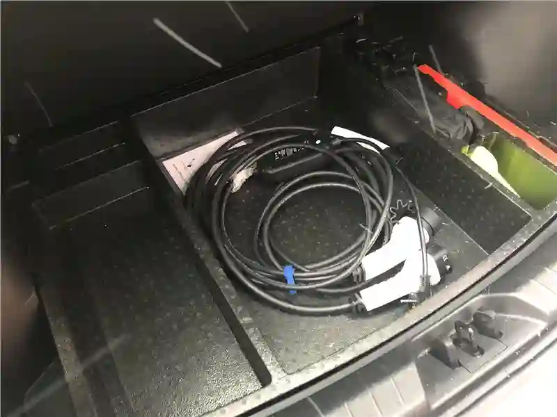 В органайзере под полом уложены зарядные кабели, запасного колеса нет
