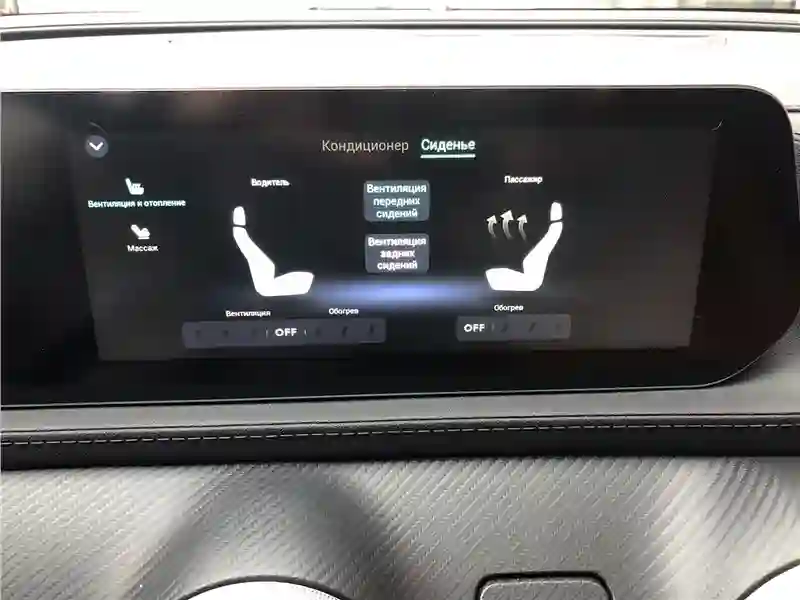 Массаж можно включить и кнопкой на сиденье, и на центральном экране