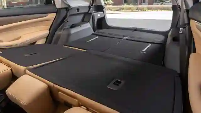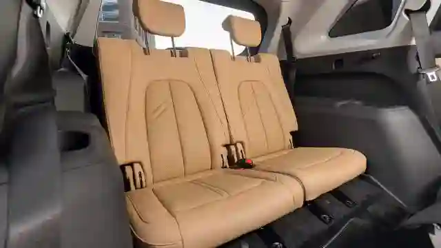 Разработчики машины решили, что в семиместной конфигурации должно оставаться место для багажа. Поэтому третий ряд сдвинули вперед, увеличив объем багажника, но потеснив пассажиров. Место для ног можно увеличить, сдвинув вперед диван второго ряда, но в этом случае у его пассажиров будет минимальный запас пространства за коленями.