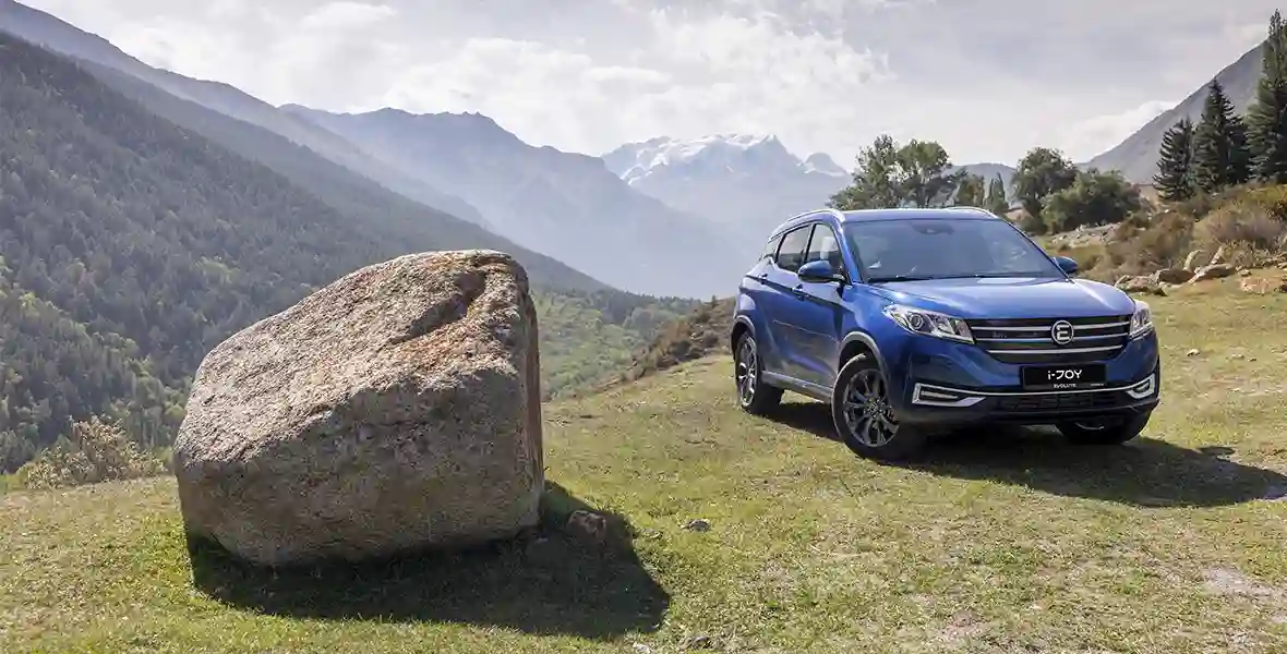 Батарея емкостью 85,9 кВт•ч делает переднеприводный Внедорожник i‑SKY самым дальнобойным из чисто электрических EVOLUTE — запас хода заявлен в 511 км. 204-сильный электромотор, выдающий крутящий момент в 340 Нм, разгоняет машину от нуля до ста за 8,6 секунды, максимальная скорость 180 км/ч. i‑SKY почти на 20 см длиннее, чем i‑JOY, он уже С-класс. И подвеска здесь, в отличие от двух предыдущих EVOLUTE, полностью независимая, так что едет i‑SKY интереснее. Да и салон побогаче — полный зимний пакет, вентиляция-массаж, панорамная крыша c эффектом звездного неба.